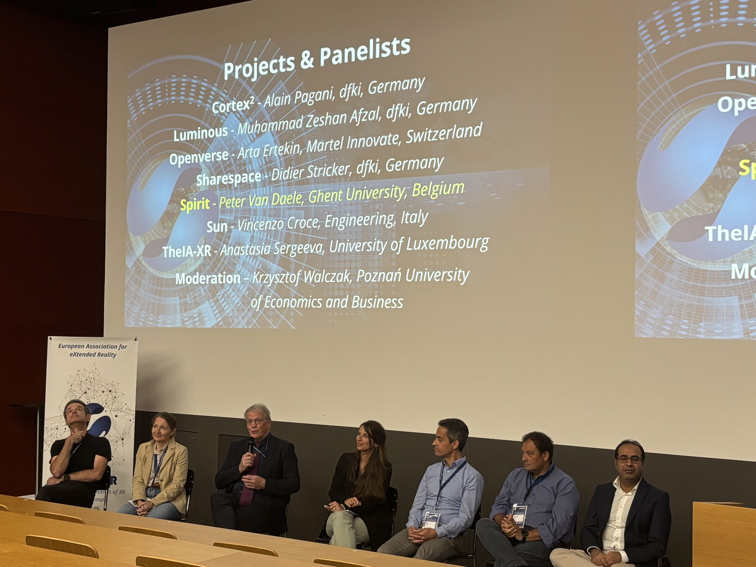 Day 3 concluded with the European Projects Panel on “The Future of XR”, bringing together leading initiatives to share insights and perspectives. The panel was moderated by Krzysztof Walczak from Poznan University of Economics And Business and featured insights from: