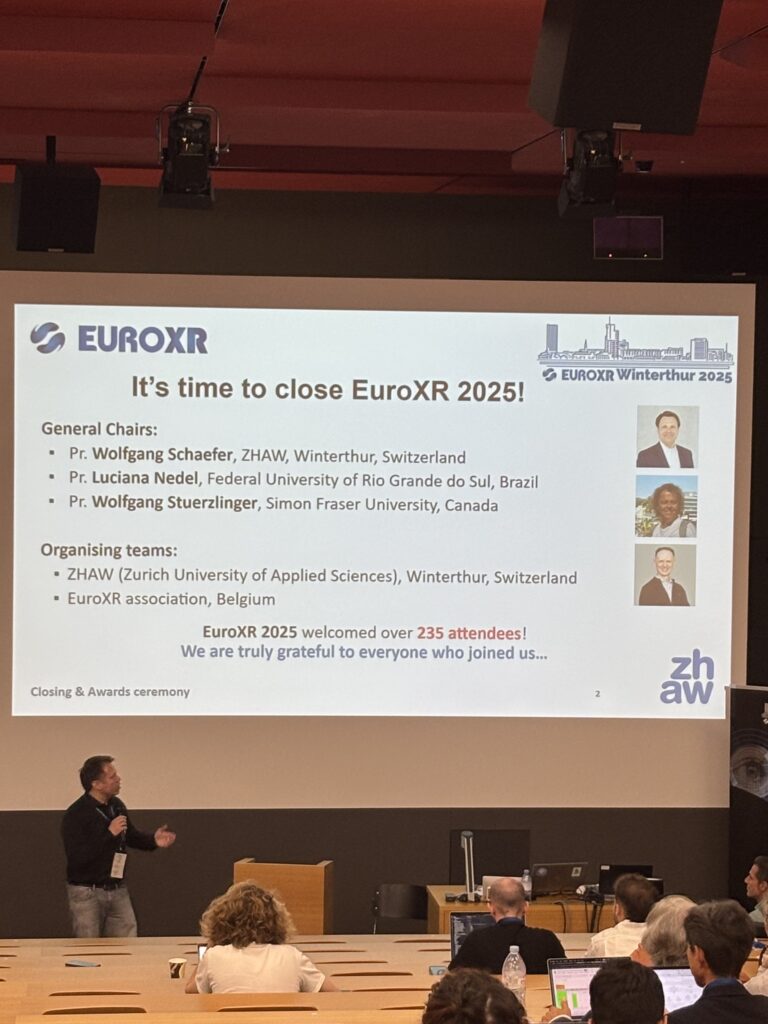 Organised by the European Association for eXtended Reality (EuroXR) and ZHAW Zurich University of Applied Sciences, EuroXR 2025 served as a vibrant hub for researchers, industry leaders, and technology experts across Virtual, Augmented, and Mixed Reality. The programme included:
